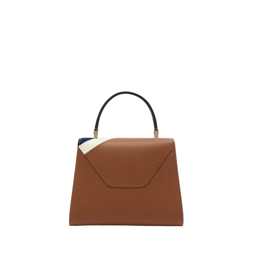 The Iside Intarsia V-Stripes Top Handle Mini Bag embodies refined artistry and contemporary design. Expertly crafted from our luxurious Millepunte calf leather, its deep chocolate brown hue radiates sophistication, while contrasting geometric stripes bring a modern artistic flair. Compact yet functional, the interior offers ample room for daily essentials. Designed for versatility, it can be styled by hand, on the shoulder, or across the body. Finished with Calve’s hand-painted black lacquered Costa edges, it stands as both a statement of craftsmanship and timeless elegance.